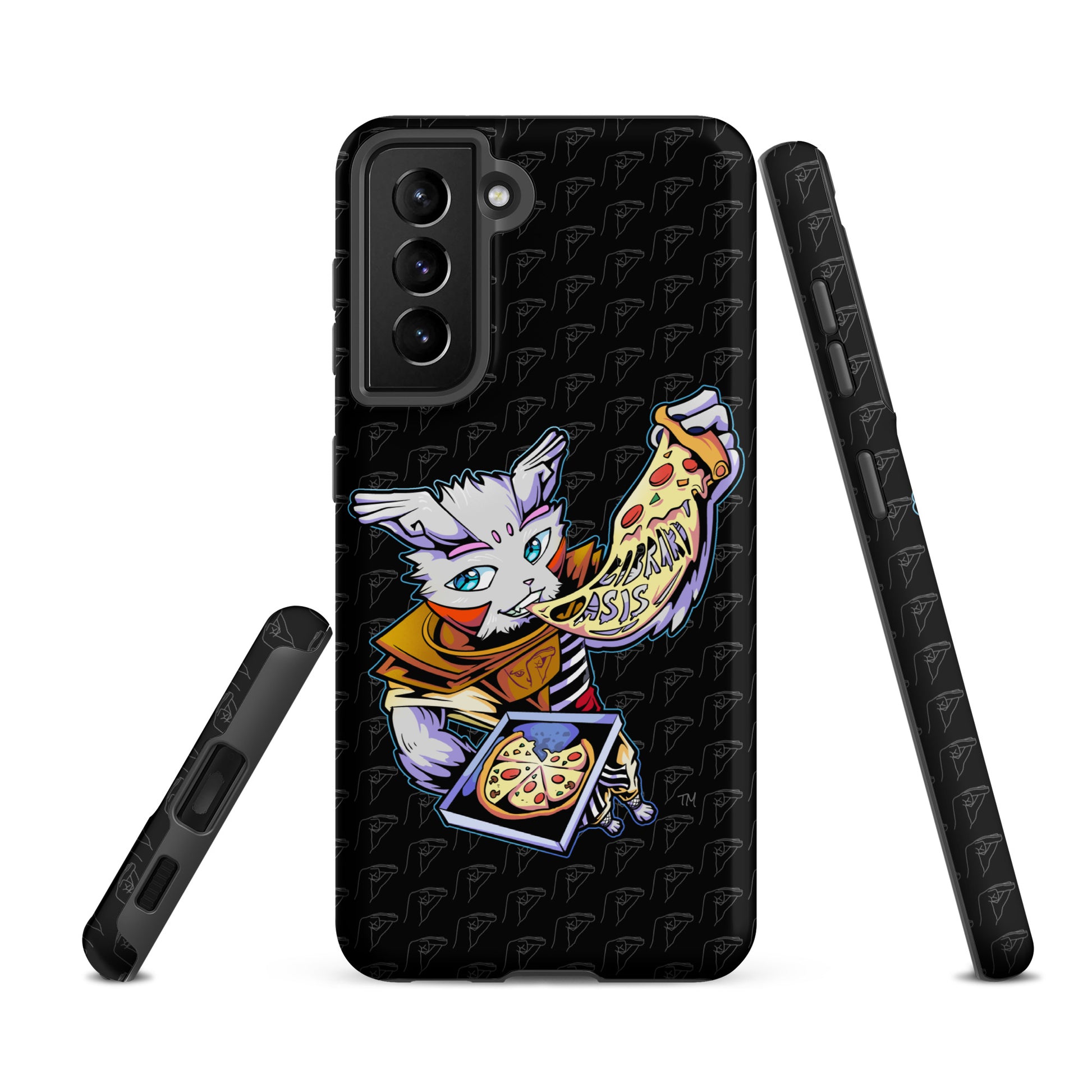 Are we seeing things, or does that say "Library Oasis"? This is the first Libris phone case design from the very first Library Oasis drop, featuring the perfect moment of Libris's legendary cheese pull and the euphoria of that first flaming hot pizza slice.
